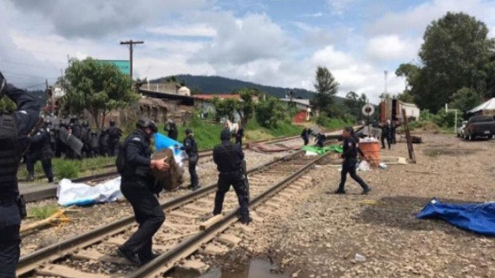 Y es que los docentes se negaron a dejar las vías, por lo que los elementos restablecieron por la fuerza la circulación de los ferrocarriles.
