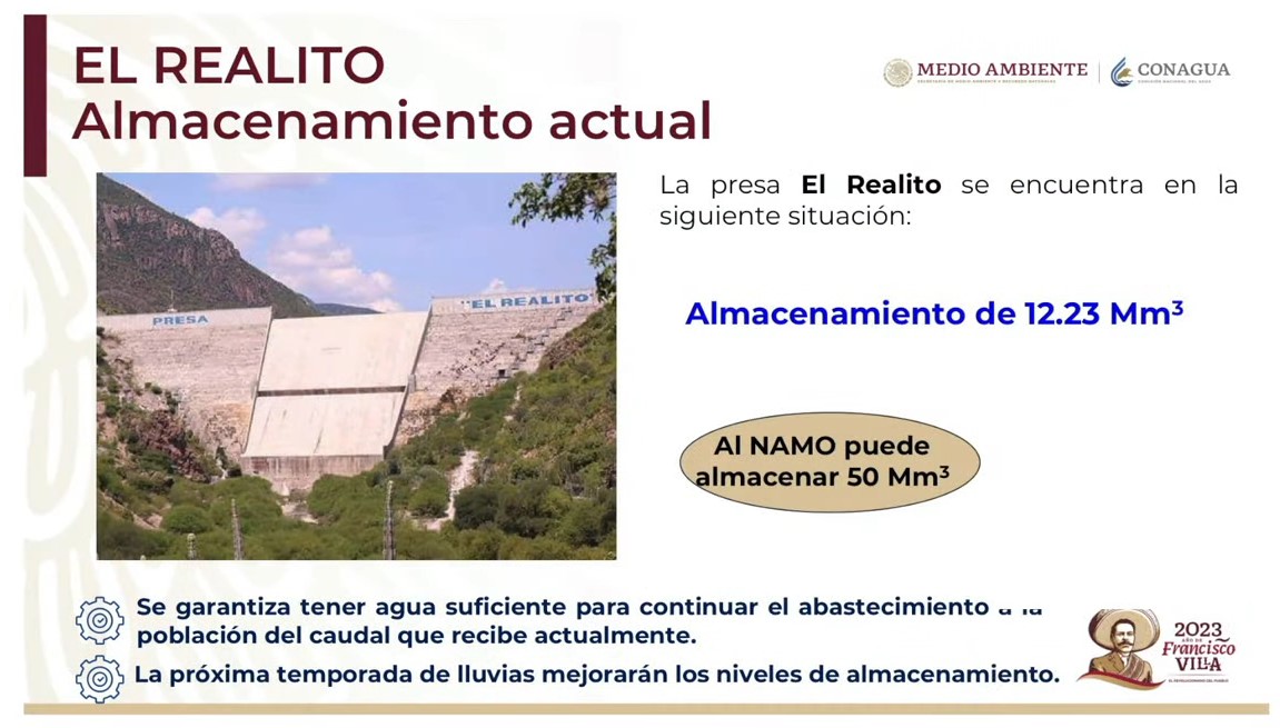 “Con este volumen almacenado se garantiza tener agua suficiente para continuar el abastecimiento a la población del caudal que recibe actualmente. (…) La temporada de lluvias inicia mayo-junio; mejorará los niveles de almacenamiento en la Presa El Realito”, acotó.