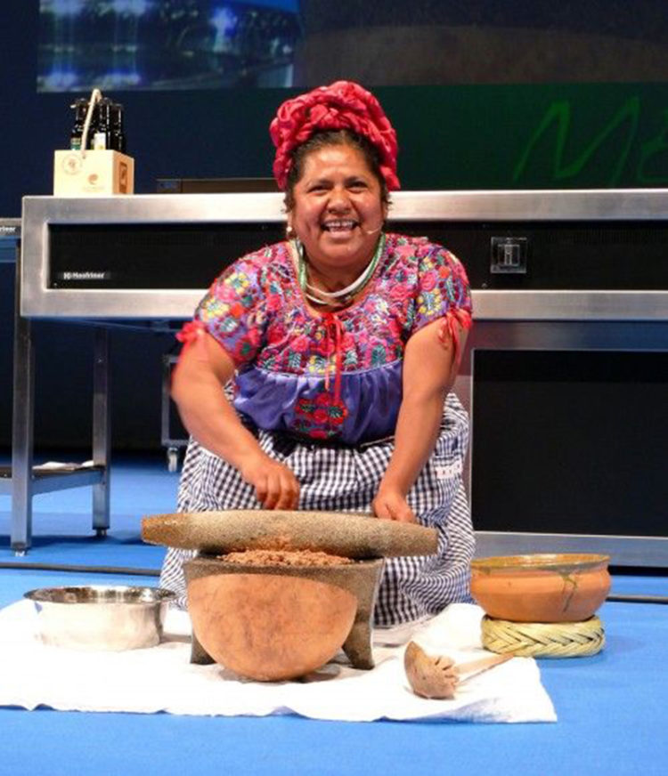 Abigail Mendoza Ruiz, ha dedicado toda su vida a la producción y promoción de la cocina mexicana a nivel nacional e internacional. Actualmente, es una de las Embajadores 2015 de la iniciativa social, educativa y cultural, Celebrando México. Eso la enorgullece. “Desde niña me ha emocionado cocinar y poder ver que la gente goza con lo que yo hago, por eso, es un orgullo poder representar ante el mundo a la gastronomía nacional y todo lo que podemos servir en nuestras cocinas”, menciona la también artesana zapoteca y dueña de famoso restaurante tradicional Tlamanalli, ubicado en Teotitlán del Valle, Oaxaca. “Los que son elementos mágico-terrenales en México son el maíz, el frijol, la calabaza y el cacao. Son esenciales para los mexicanos”, destaca.
