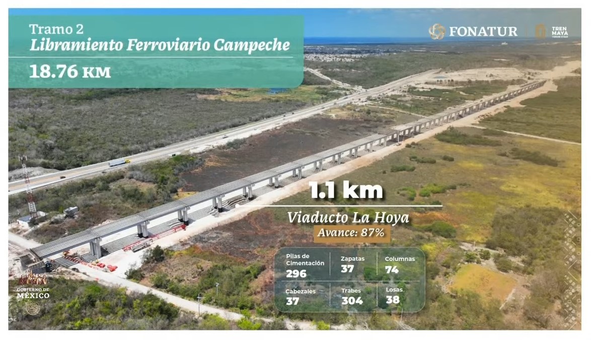 “Yo creo que en un mes, en ese tramo 2, ya nos podemos subir a una locomotora en Campeche e ir hasta Mérida viendo cómo están las vías férreas y cómo quedaron los terraplenes, las terracerías, el balasto, los rieles”, apuntó.