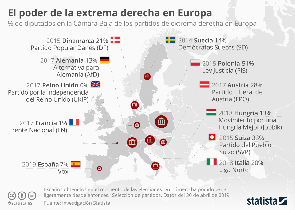 En el caso de la Fundación Disenso, se trata de una plataforma hermanada con los partidos de extrema derecha en Europa, sobre todo con tres países que son a su vez el dolor de cabeza de la Unión Europea (UE) y de los partidos demócratas de la región: además de Vox en España, la formación Ley y Justicia en Polonia, que acuñó un discurso ultranacionalista conservador que está poniendo en riesgo el futuro del país en la UE; Unión Cívica en Hungría, liderada por uno de los políticos más extremistas del continente, el primer ministro del país Viktor Orban; y el movimiento extremista del Frente Nacional de Francia, ahora liderado por Marine Le Pen, la hija del fundador JeanMarie Le Pen.