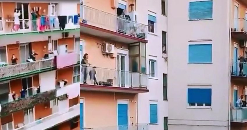 “¡Al mal tiempo…, buena cara!”, así, con ese optimismo y entusiasmo los italianos enfrentan la cuarentena por el coronavirus Covid-19, saliendo a tocar sus instrumentos musicales y cantando a sus balcones en casa.