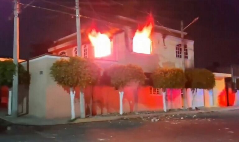 Ya para las 2 de la mañana, la vivienda ardía en llamas sin que unidades de emergencia pudieran acercarse para controlar el fuego, pues para entonces los inconformes ya habían cerrado los accesos a la zona e incluso pidiendo con amenazas a reporteros que se retiraran del lugar, pues de lo contrario serían agredidos.