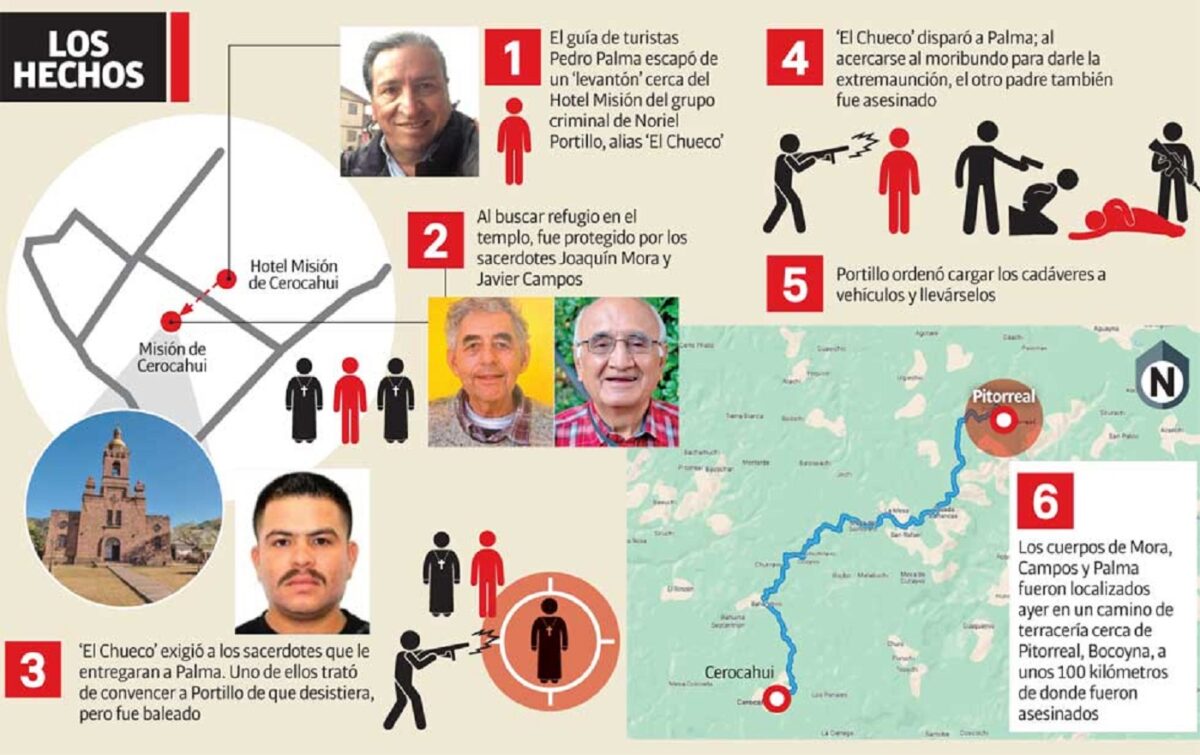 Estos días recientes, en medio del impacto y el dolor por el asesinato de sus hermanos sacerdotes de Cerocahui Javier Campos y Joaquín Mora, recibió la llamada de una madre desesperada. Horas antes de que los hombres de José Noriel Portillo, El Chueco, llegaran a la parroquia donde cometieron el triple homicidio, pasaron por la casa de otra familia con la que habían tenido problemas. Mataron a Raúl Osvaldo Berrellesa (22 años) enfrente de su esposa, secuestraron a su hermano y quemaron la casa.