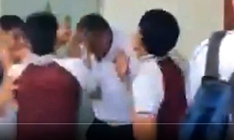 En las imágenes, que ya circulan ampliamente en redes sociales, se observa cómo los jóvenes, entre empujones, gritos, patadas e insultos, rodean al docente y lo atacan sin que las intervenciones de otros maestros lograran contenerlos.