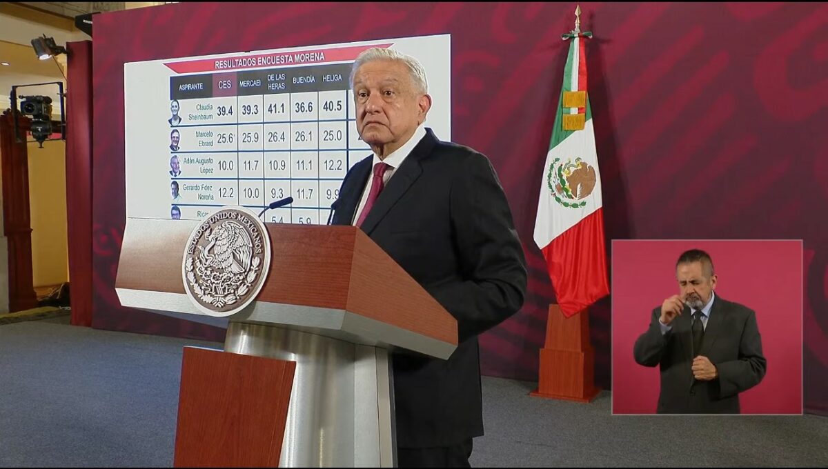 Presentación de las encuestas en la conferencia matutina de hoy, que finalmente le dieron el triunfo a Claudia Sheinbaum Pardo.