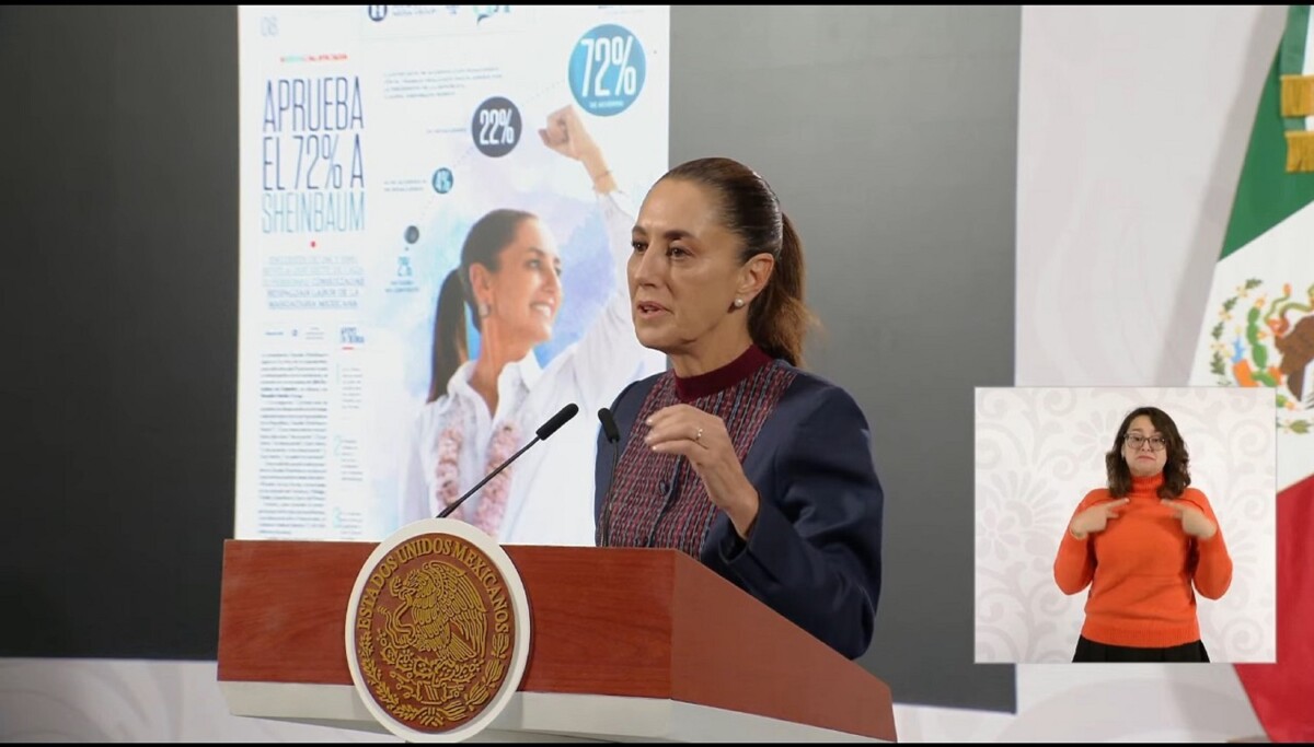 Aprueba 72% del pueblo de México labor de Sheinbaum