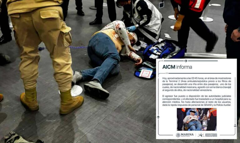 El incidente ocurrió alrededor de las 02:45 horas de este jueves, cuando un hombre de nacionalidad venezolana fue atacado a puñaladas en los mostradores del AICM, desatando la movilización de personal de la Secretaría de Marina (Semar).