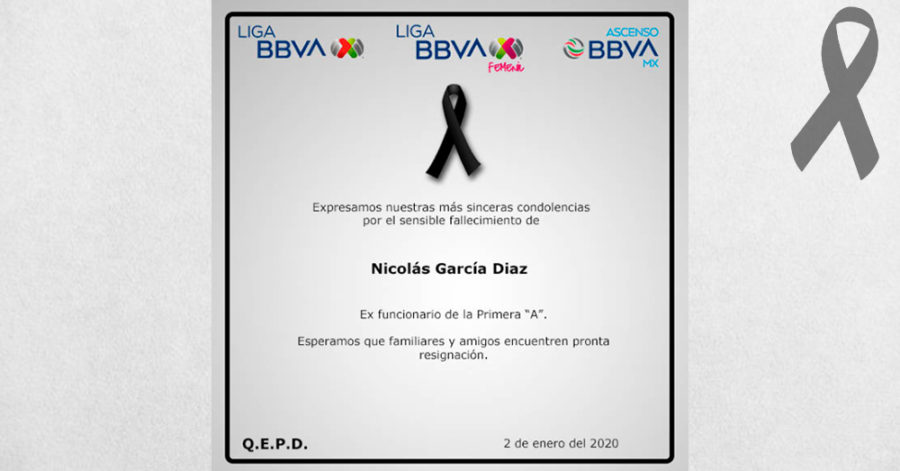 Ascenso MX: Muere ex directivo Nicolás García Díaz.- El ex directivo del equipo Correcaminos y funcionario del Ascenso MX, Nicolás García Díaz, perdió la vida el pasado 2 de enero.