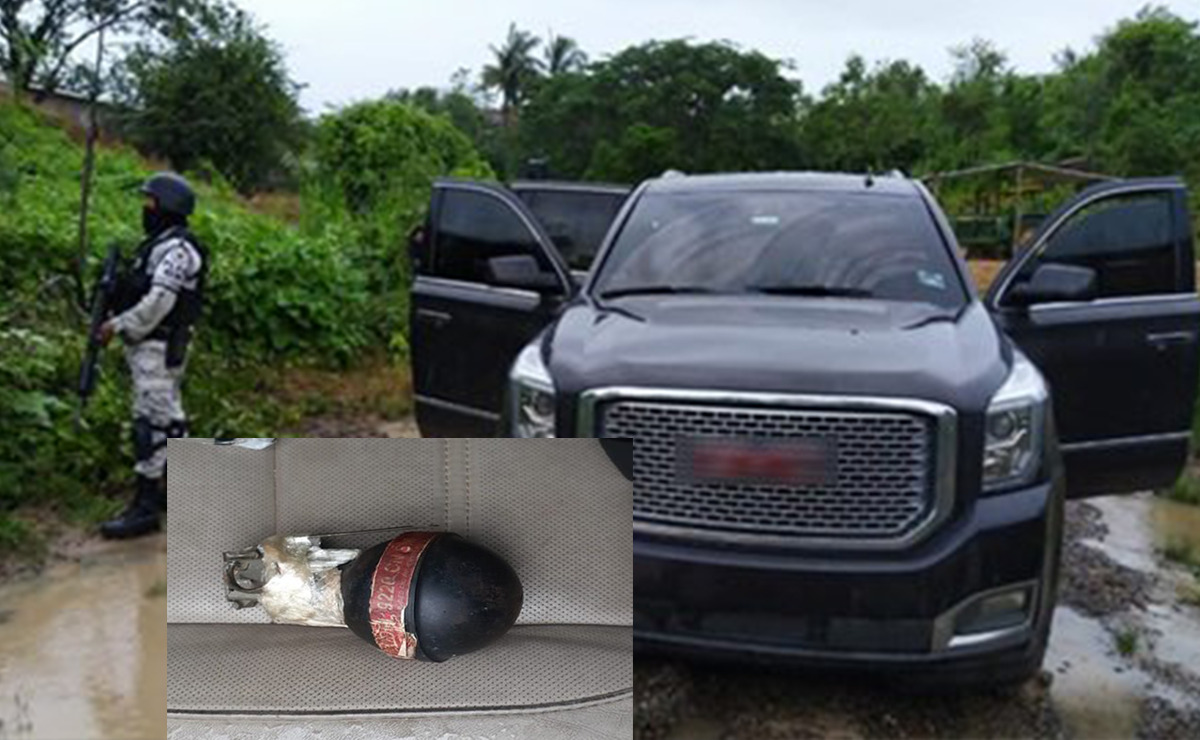 Durante un recorrido como parte de sus actividades de vigilancia y seguridad, elementos de la Guardia Nacional (GN) aseguraron esta tarde diverso equipo táctico así como una granada activa en el interior de una camioneta.