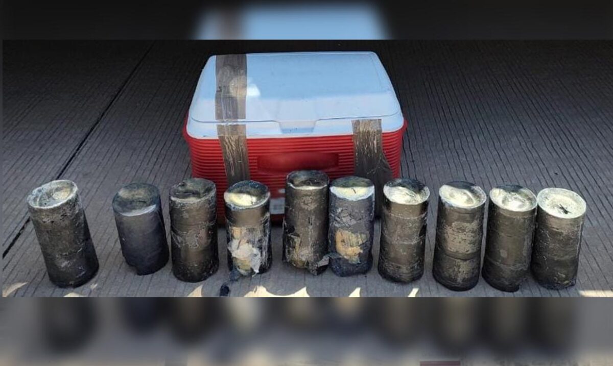 En el interior de la misma localizaron 10 piezas de cirios color negro; sin embargo, al revisarlos minuciosamente se percataron de que estaban rellenos con envoltorios de una sustancia blanca y cristalina, con las características propias del cristal.