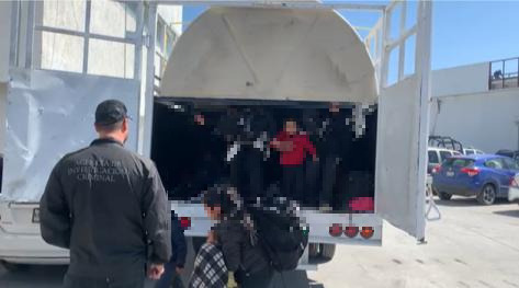 El Instituto Nacional de Migración (INM), de la Secretaría de Gobernación, en coordinación con la Fiscalía General de la República (FGR), lograron el aseguramiento de 59 personas migrantes escondidas en compartimentos que simulaban cascos de tinacos plastificados gigantes, colocados en la plataforma de una camioneta.