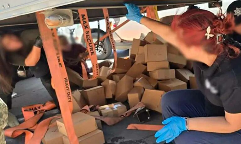 La intervención del vehículo permitió detectar irregularidades estructurales en la unidad de carga. Durante el procedimiento de inspección, los elementos notaron que la parte inferior del contenedor presentaba alteraciones no compatibles con su diseño original. La dependencia precisó que, tras una inspección detallada, se encontraron los 564 paquetes con metanfetamina. La droga estaba oculta dentro de compartimentos que habían sido habilitados para el tráfico ilícito.