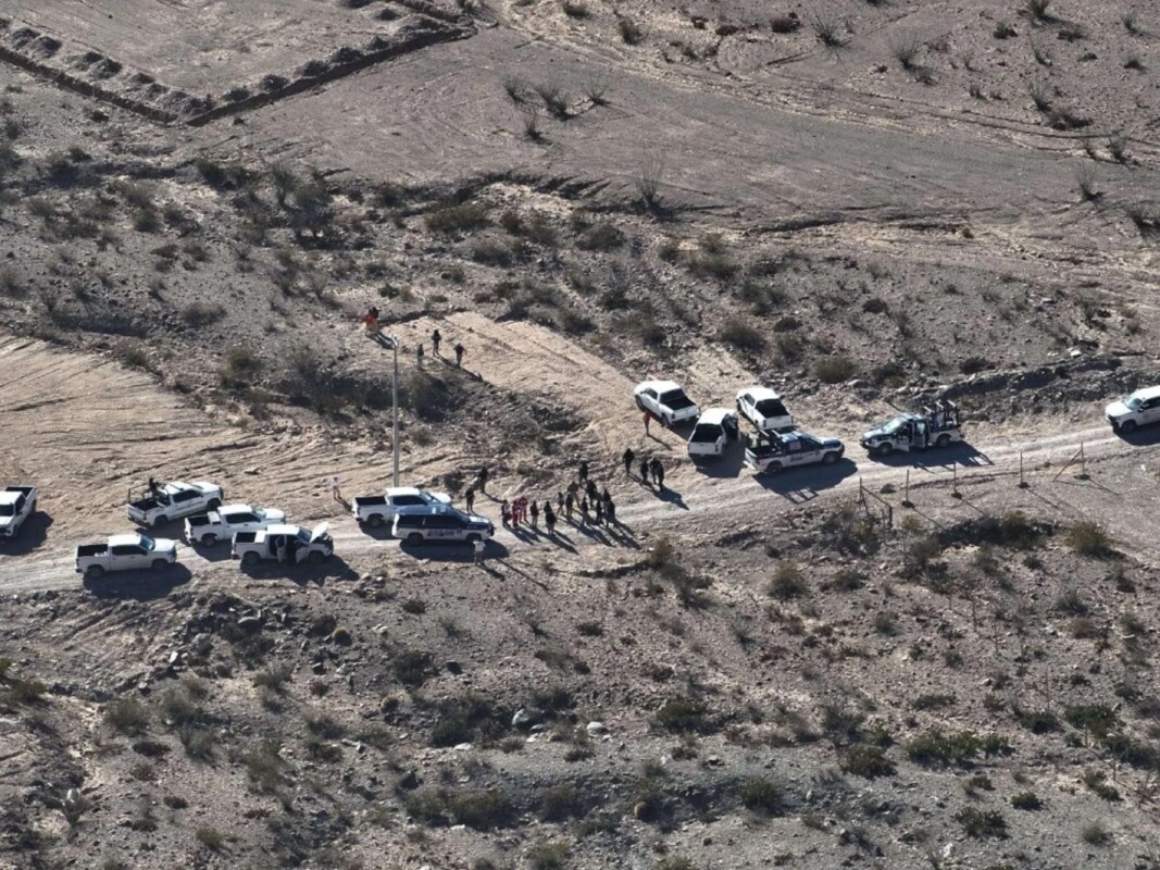 Policía estatal, Guardia Nacional y militares desplegaron un operativo en una brecha cercana al retén Precos, con una ambulancia, donde localizaron a un agente del INM fallecido, y al lugar llegaron peritos de criminalística de la Fiscalía General del Estado para procesar la escena.