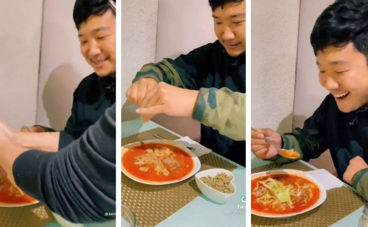 Así reaccionó japonés al probar pozole por primera vez en su vida