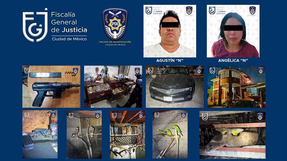 Asi lo dio a conocer Ulises Lara López, vocero de la Fiscalía General de Justicia de la Ciudad de México (FGJCDMX), quien explicó que tras la realización de tres cateos en Tláhuac, derivaron en el aseguramiento de posibles drogas, un arma de fuego, elementos balísticos, diversos animales exóticos y un vehículo de alta gama.