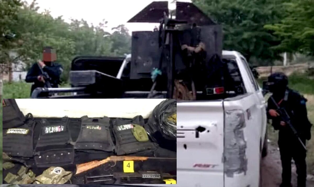 Como resultado del enfrentamiento y la captura de los presuntos sicarios, también se aseguraron varias armas de fuego, equipamiento militar, un vehículo robado y drogas.