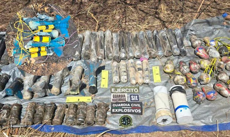 Además, se encontraron 12 granadas de mano, 40 dispositivos para ser disparados desde morteros y 14 artefactos tipo mina. Asimismo, los efectivos aseguraron aproximadamente 18 kilos de explosivos y seis kilos de pólvora, materiales que, de haber sido utilizados, habrían aumentado el riesgo para la población.