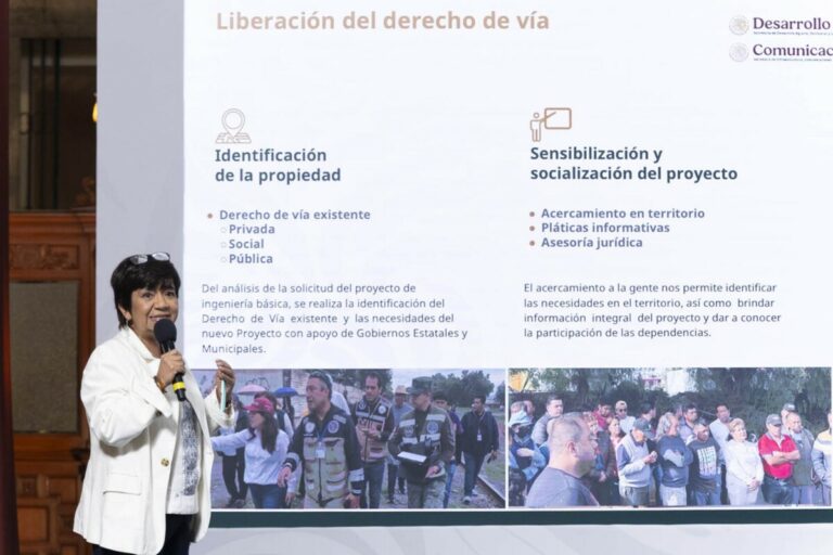 “Agradecer mucho a toda la población que ha ayudado muchísimo al avance que se tiene de los trenes: ejidos, personas, comunidades, municipios. No hemos tenido realmente ningún problema y además como se menciona aquí y es importante que se conozca, no hay intermediarios en la liberación del derecho de vía, si se va a adquirir un pedazo de tierra para que pueda pasar el tren se habla directamente con el municipio, con el ejido, se hacen asambleas, se explica el proyecto y los pagos son de manera directa, sin ningún intermediario. Entonces, sobre todo, agradecer a la población toda la cooperación que ha habido y como ven va muy avanzado”, destacó en la conferencia matutina: “Las mañaneras del pueblo.