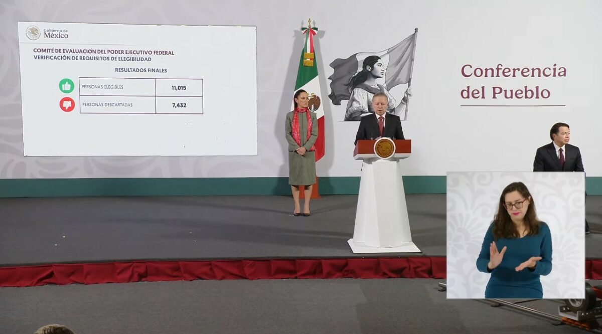 El coordinador de Política y Gobierno, Arturo Zaldívar, dio a conocer los resultados finales del proceso de verificación de elegibilidad de los aspirantes a diversos cargos en el Poder Judicial de la Federación, de acuerdo a las cifras del Comité de Evaluación del Poder Ejecutivo.