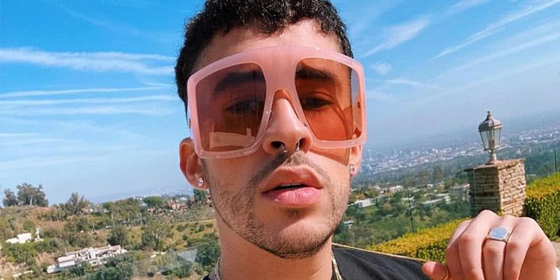 En la primera imagen Benito Antonio Martínez Ocasio, nombre de pila del cantante, aparece con el torso descubierto y unos lentes de sol en forma de corazón, muy relajado disfrutando del sol.