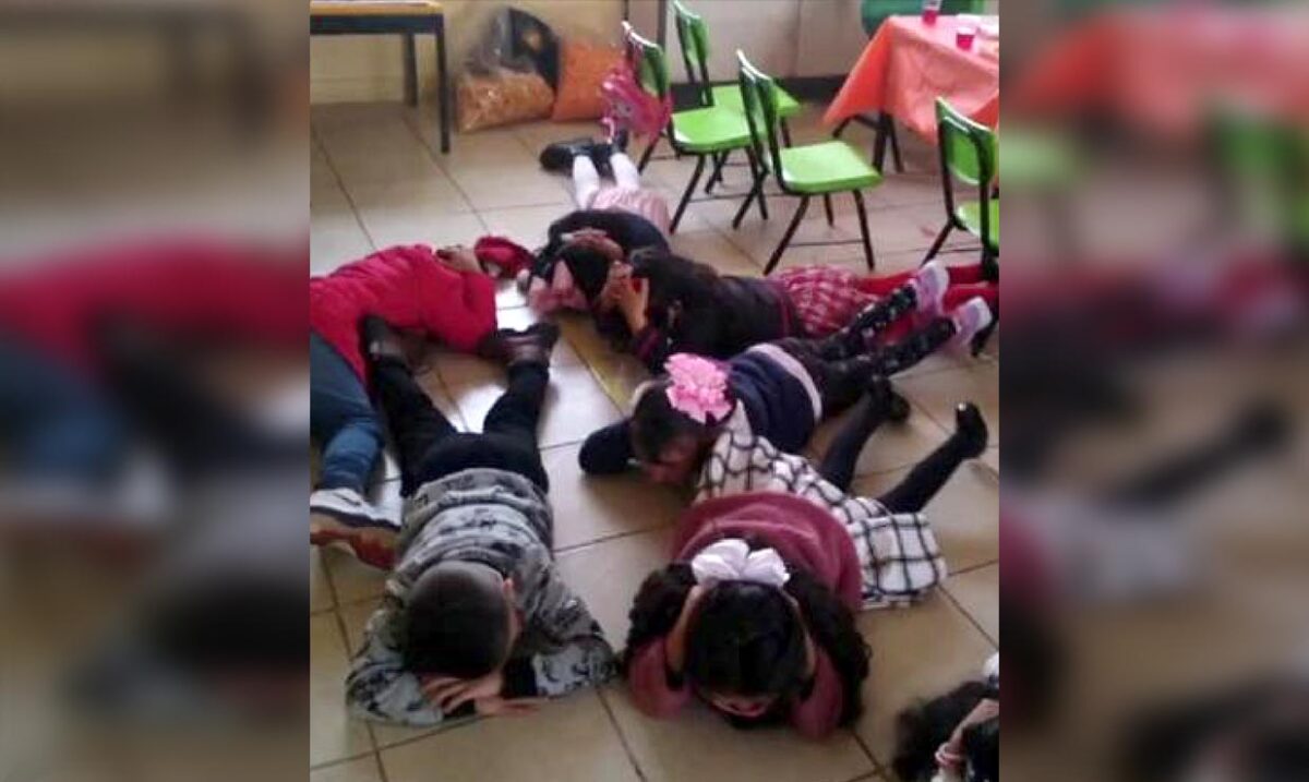 El indignante hecho, tuvo lugar en el puerto de Guaymas, cuando por el peligro causado por las detonaciones de arma de fuego cerca de su plantel, los pequeños tuvieron que tirarse pecho tierra en medio del pánico generalizado.