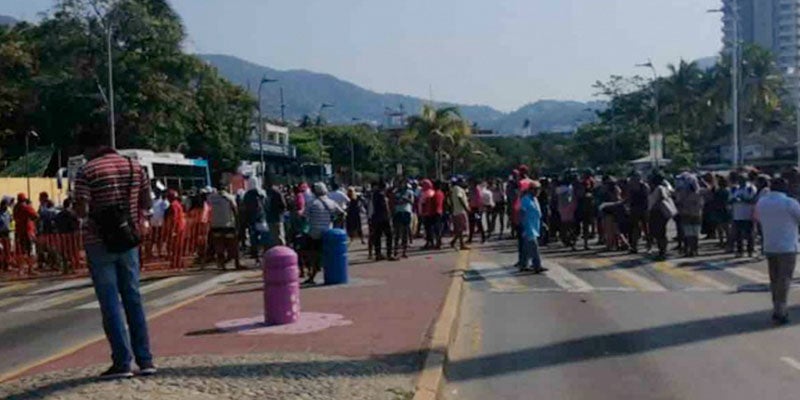 La avenida Costera Miguel Alemán, fue bloqueada por trabajadores de diferentes playas de Acapulco, para exigir que les permitan trabajar; luego de las medidas de restricción giradas por el ayuntamiento, para evitar la propagación del coronavirus.