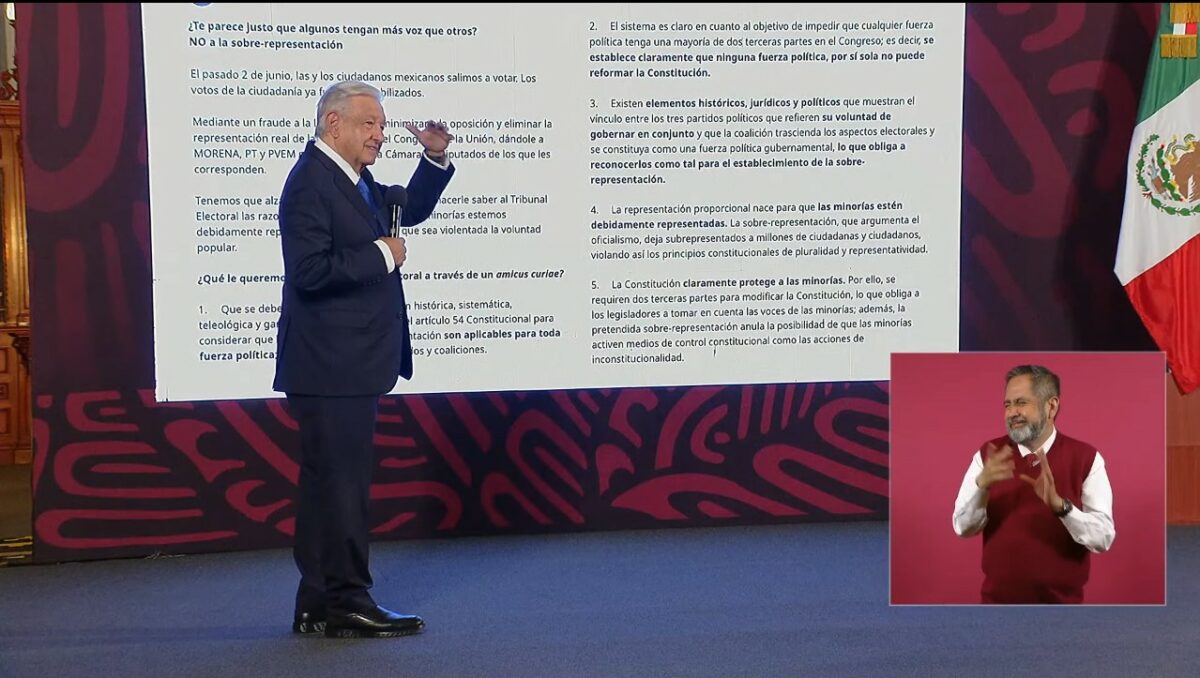 En la mañanera de este día, sin pregunta de por medio, el mandatario federal criticó “la hipocresía” de sus opositores, pues mientras fueron favorecidos por las actuales leyes que establecen el reparto de los espacios plurinominales, exigían que “la ley es la ley”.