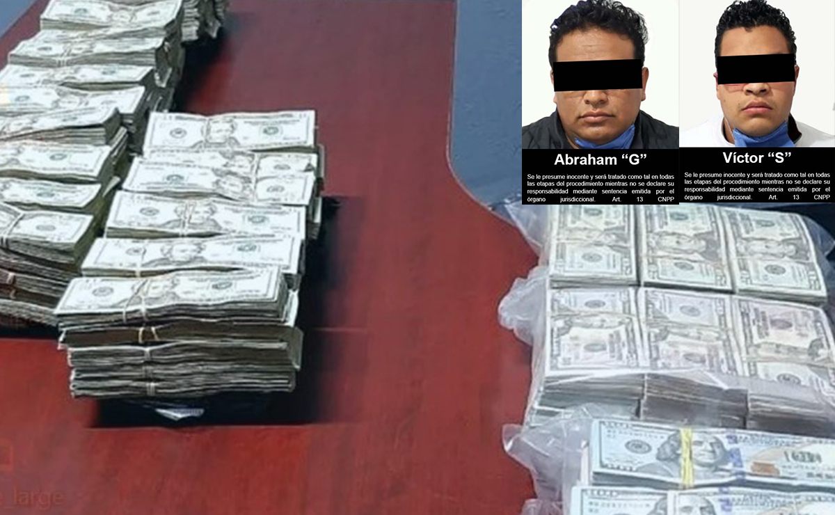 Las autoridades informaron que, a los detenidos se les aseguraron nueve envoltorios; estos contenían en su interior billetes en dólares americanos, de diferentes denominaciones; que en total sumaron 410 mil dólares.