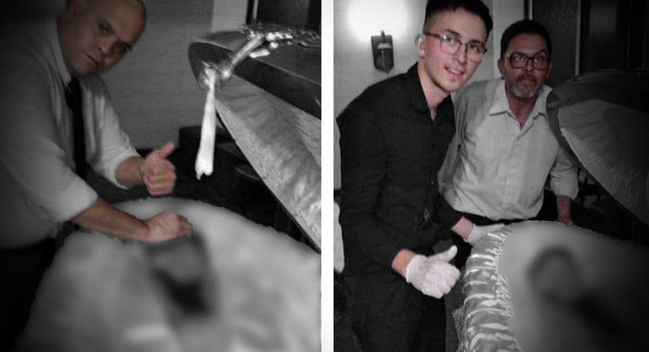 Lo que ocurrió es lo siguiente: empleados de la funeraria, Pinier, en Argentina, se fotografiaron con el cuerpo sin vida del astro argentino, mientras preparaban el féretro para trasladarlo a Casa Rosada y velarlo.