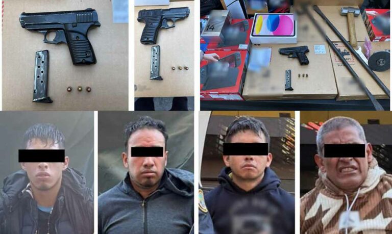 Los detenidos —Yavet H., Raúl R., Salamos C. y Raúl Y., con edades entre 20 y 55 años— fueron puestos a disposición del Ministerio Público. Tras un cruce de información, se confirmó que el más joven ya había sido ingresado previamente a la cárcel y presentado ante el MP por robo, mientras que otro de los implicados, de 33 años, cuenta con un antecedente similar registrado en 2023.