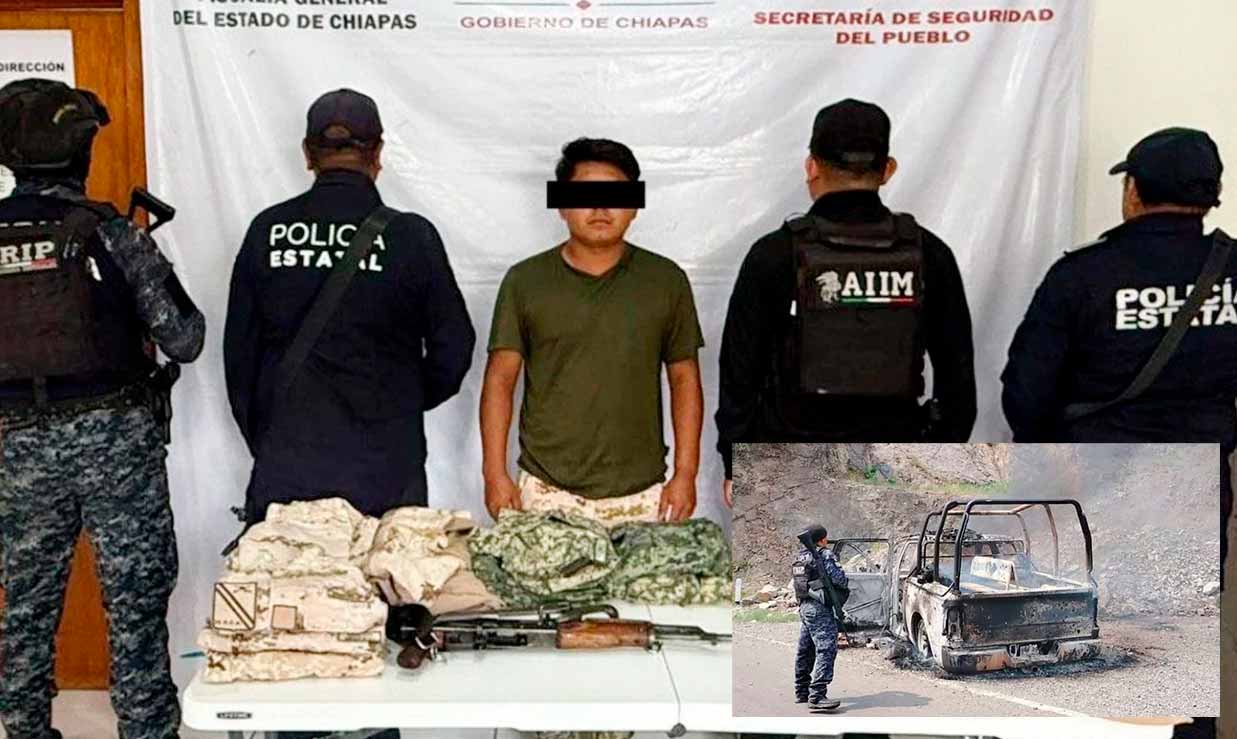 Una operación conjunta entre fuerzas estatales y federales derivó en la captura de un presunto miembro del comando armado responsable del violento ataque contra una patrulla de la Policía Estatal Preventiva ocurrido en Chiapas donde murieron cinco policías.