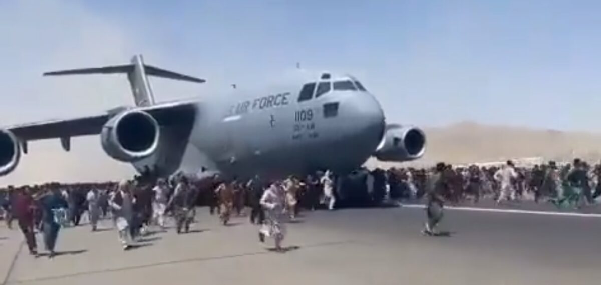 Miles de afganos temerosos de un regreso del Talibán están tratando de escapar del país por el aeropuerto en Kabul. Videos en redes sociales mostraron a centenares de personas corriendo por la pista mientras soldados estadounidenses hacían disparos al aire. Otro video mostraba a una muchedumbre empujándose escalera arriba, tratando de abordar un avión, con algunas personas colgadas de las barandas.