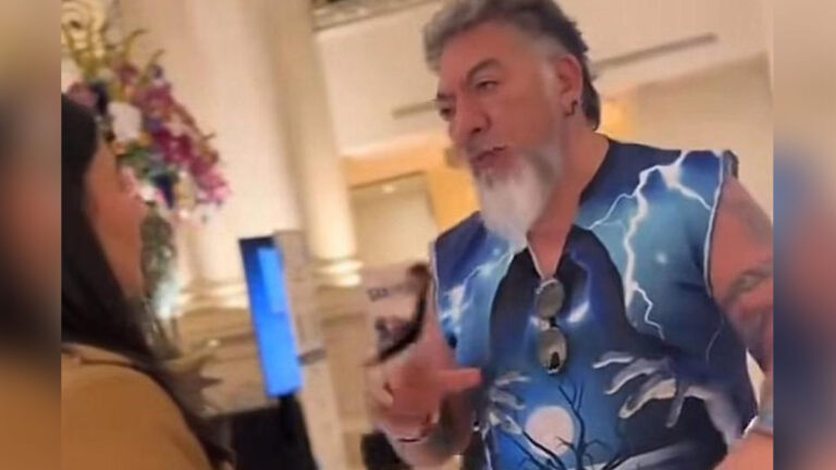 En el video que fue difundido por él, se observa al «Cazafantasmas» reclamarle a un mesero porque le dijeron que no podía desayunar debido a que «se ofenderían otras personas».