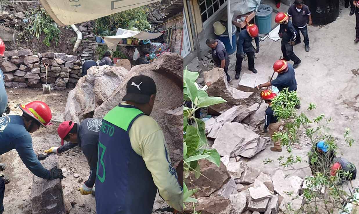Una casa en Tlanepantla, Estado de México (Edomex) fue aplastada por toneladas de rocas que cayeron desde una altura de por lo menos 25 metros. Cada una de las pesadas moles de piedra tenían un peso de entre 3 y 5 toneladas.