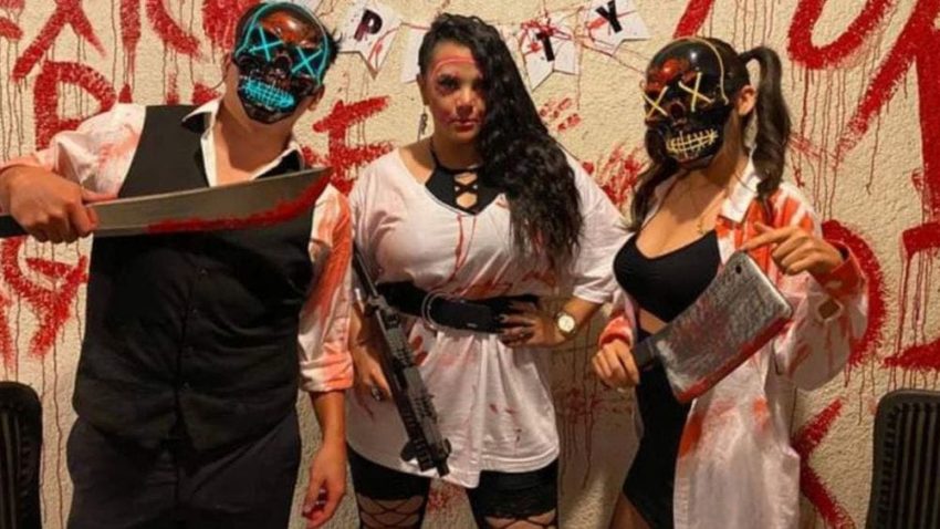 En las fotografías publicadas aparecen más personas con máscaras, cuchillos y machetes pintados con rojo. En la publicación la regidora escribió un breve mensaje diciendo “Happy Halloween”, acompañada de una serie de hashtag como “#thepurgemakeup #thepurgecostume #thepurgeparty #lozlopezcasas #2020halloween”.