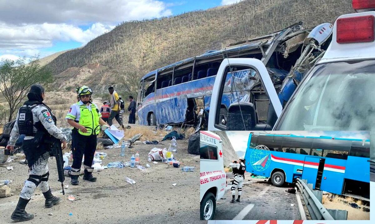 Un grupo de migrantes que viajaban en un autobús en la autopista Cuacnopalan-Oaxaca, fueron víctimas de un trágico accidente debido a la imprudencia del conductor de la unidad, al impactarse esta contra la valla de contención, accidente donde mueren 17 y resultan lesionados otros 13.