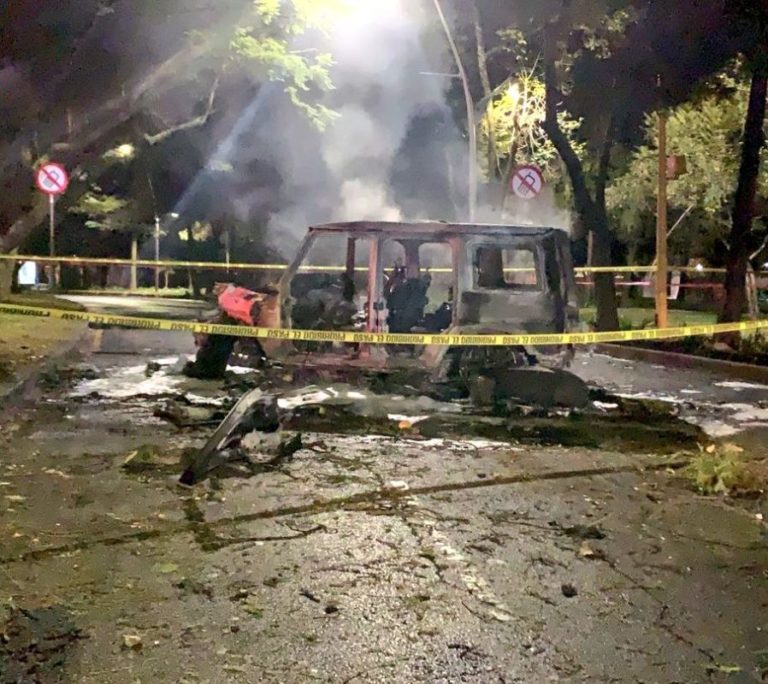 De acuerdo con los primeros reportes, por estos hechos resultaron dos personas muertas calcinadas al quedar atrapadas al interior de la camioneta que se incendió en su totalidad.