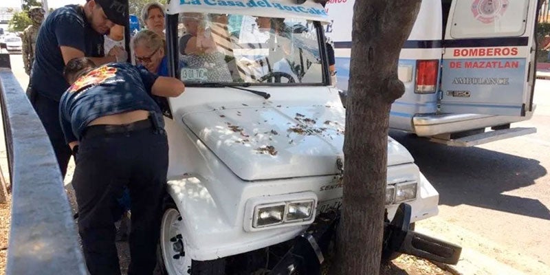 Las mujeres de la tercera edad, quedaron lesionadas, luego de que chocaran contra un árbol, en la avenida Ejército Mexicano, frente a la colonia Tierra y Libertad en el puerto de Mazatlán, Sinaloa.