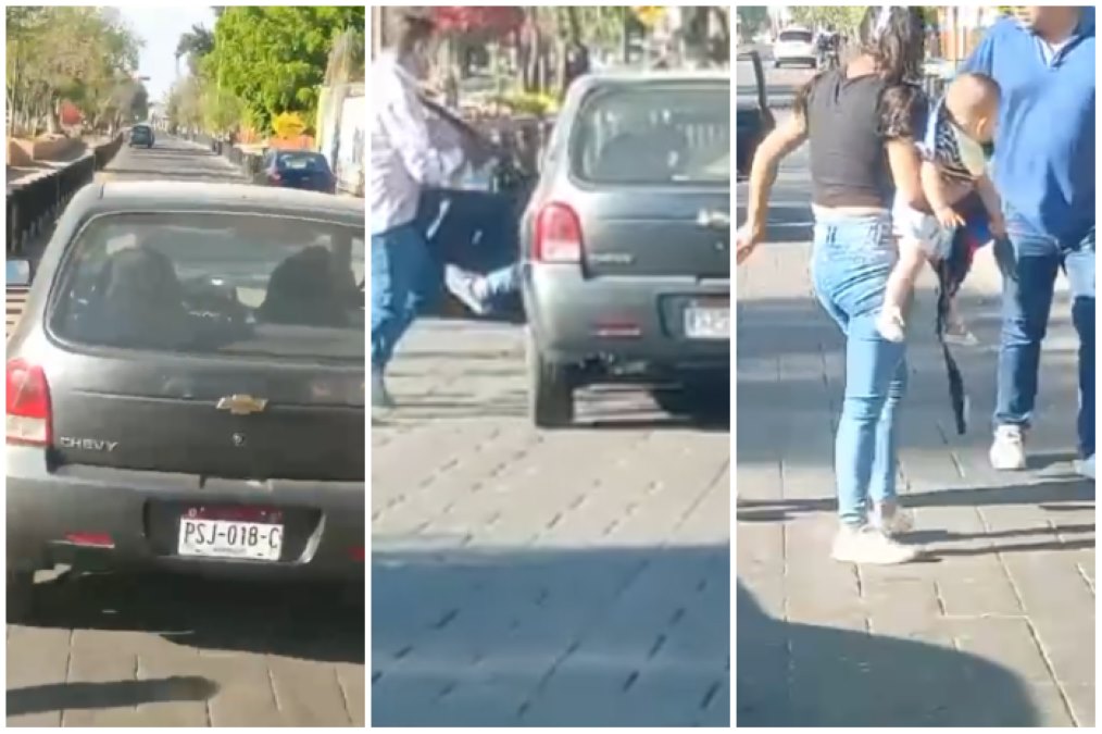 El bochornoso episodio en la Calzada Juárez, al sur de la ciudad de Morelia, Michoacán, fue de manera rápida, lo que no permitió a la Policía llegar  a tiempo, para detener la bronca.