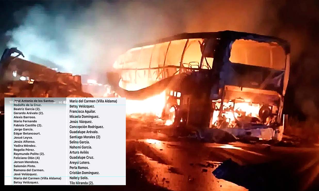 Las autoridades también publicaron un listado de las personas que viajaban en el autobús, así como su lugar de origen el cual se detalla a continuación: