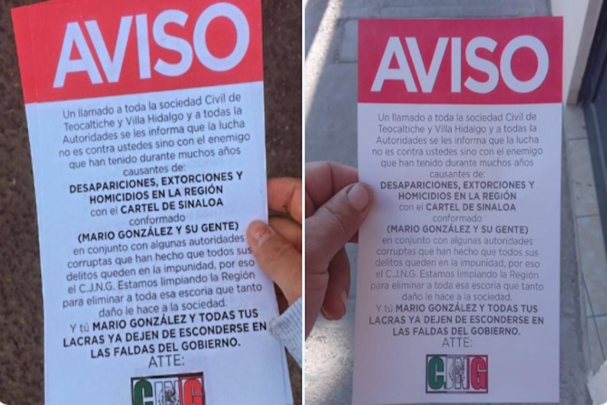 CJNG bombardea con panfletos dos poblados de Jalisco