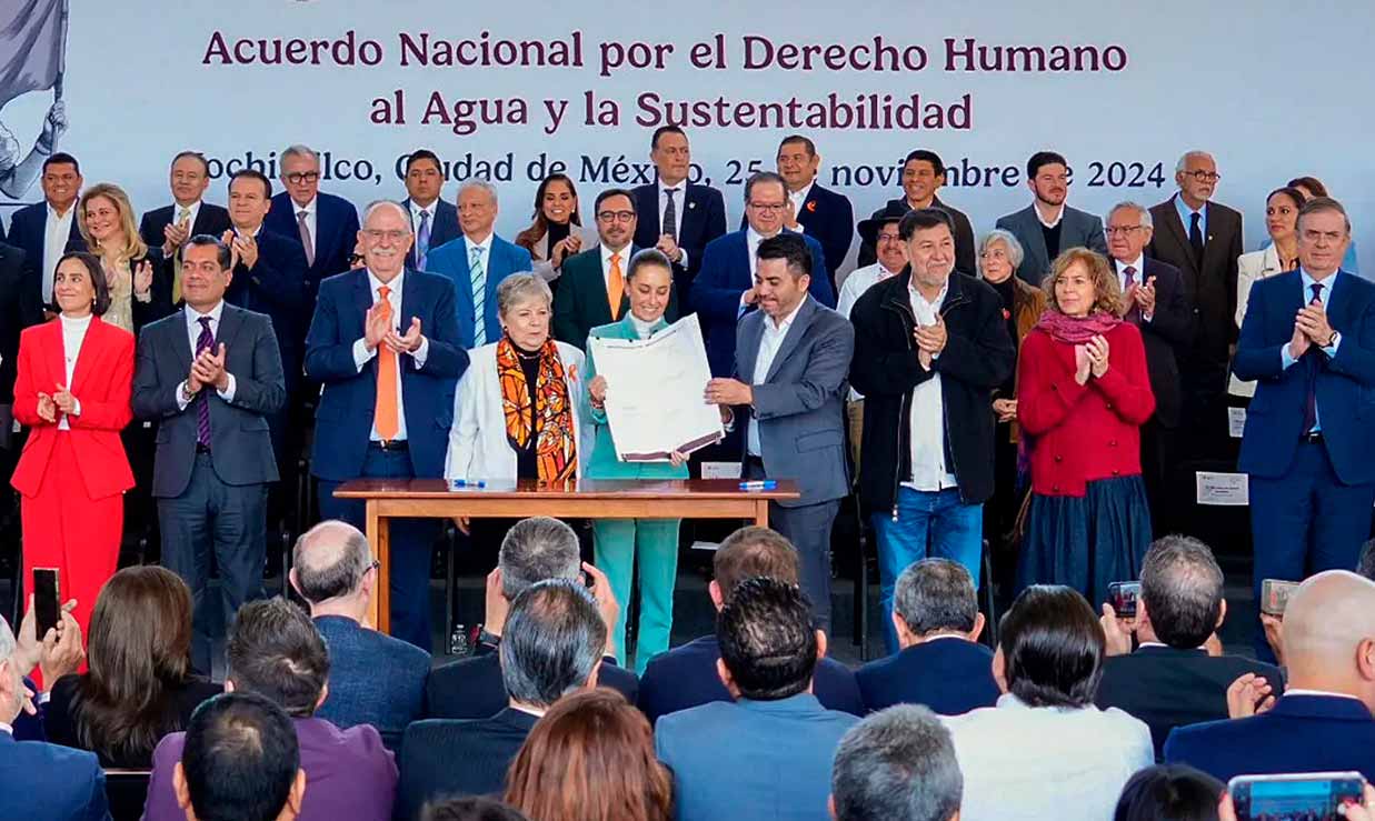 Este lunes, la Ciudad de México fue sede de la firma del Acuerdo Nacional por el Derecho Humano al Agua y la Sustentabilidad, un evento que reunió a la presidenta Claudia Sheinbaum Pardo con los gobernadores del país, incluidos los de oposición, en un esfuerzo por abordar la creciente crisis hídrica en el país.