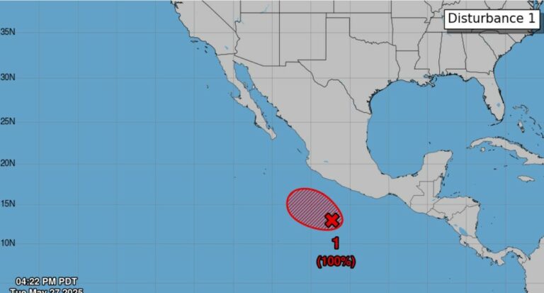 La primera tormenta de la Temporada de Huracanes de 2025 en el Pacífico oriental podría formarse este miércoles, según el Centro Nacional de Huracanes (NHC, por sus siglas en inglés), que informa que un sistema de baja presión al sur de México probablemente se convierta en una depresión tropical o tormenta tropical “Alvin”.