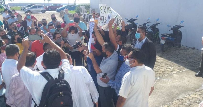 Aunque ya había entrado para reunirse con los diputados, Portillo Navarro salió y tuvo un intercambio con los inconformes.