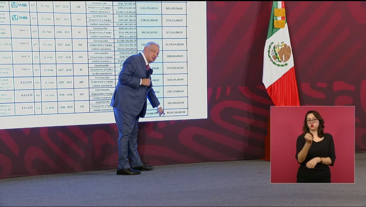 Refirió que el contrato por varios años para la renta de esos hospitales para los institutos del IMSS y del ISSSTE tienen un costo anual de 5 mil 651 millones y por todo el tiempo de la concesión la cifra supera los 93 mil millones de pesos.