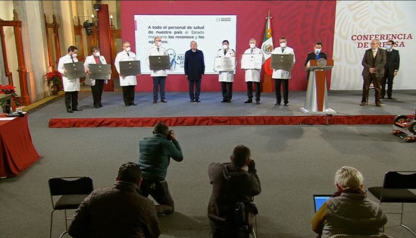 El gobierno federal otorgó este martes la Condecoración Miguel Hidalgo en Grado Placa para los 980 Hospitales del país que han brindado atención a pacientes de Covid-19.