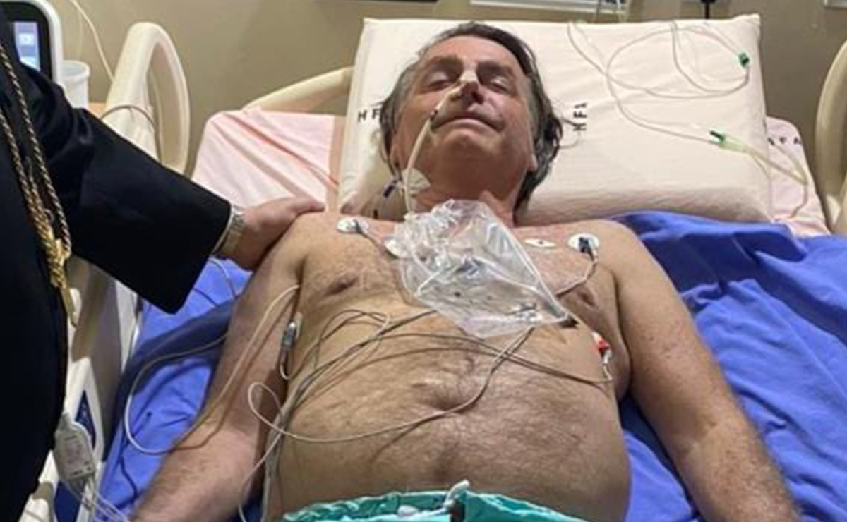 Asimismo, Bolsonaro publicó una foto de sí mismo sin camisa, con los ojos cerrados y acostado en una cama de hospital cubierta de sensores y cables. Junto a él, estaba lo que parecía ser un sacerdote con un crucifijo. Agradezco a todos por su apoyo y oraciones”, escribió Bolsonaro.
