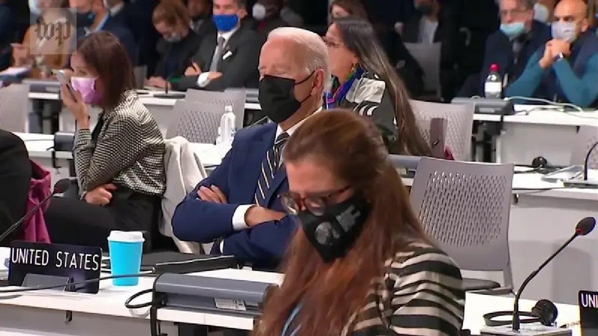 A Joe Biden le puede el cansancio. Ha sido una agenda completa para el presidente de los Estados Unidos desde que llegara a la Conferencia del G20 en Roma, capital italiana, y después a la Conferencia del Clima COP26 en Glasgow, tal vez por ello destaca un vídeo recogido durante una de las ponencias de la conferencia, que muestra al mandatario norteamericano cerrando los ojos durante unos treinta segundos, aparentemente obligado a mantenerlos abiertos, mientras escuchaba un mensaje grabado en vídeo de un activista por los derechos de las personas con discapacidad que se reprodujo en la conferencia.
