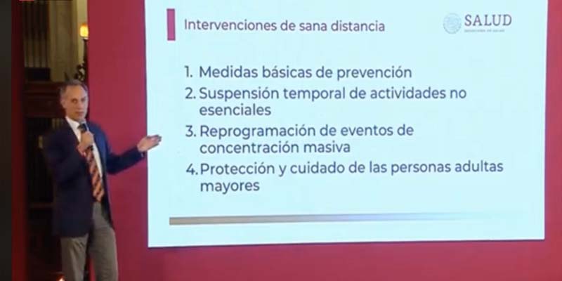 “Hasta el momento a partir del miércoles, cuando EUA anunció sus medidas, algunos eventos unilateralmente en acuerdo con los empresarios han sido pospuestos, la Liga MX decidió que los partidos se jugaran a puerta cerrada, hoy estamos poniendo estas medidas en el conjunto de recomendaciones de Sana Distancia”, afirmó el funcionario.